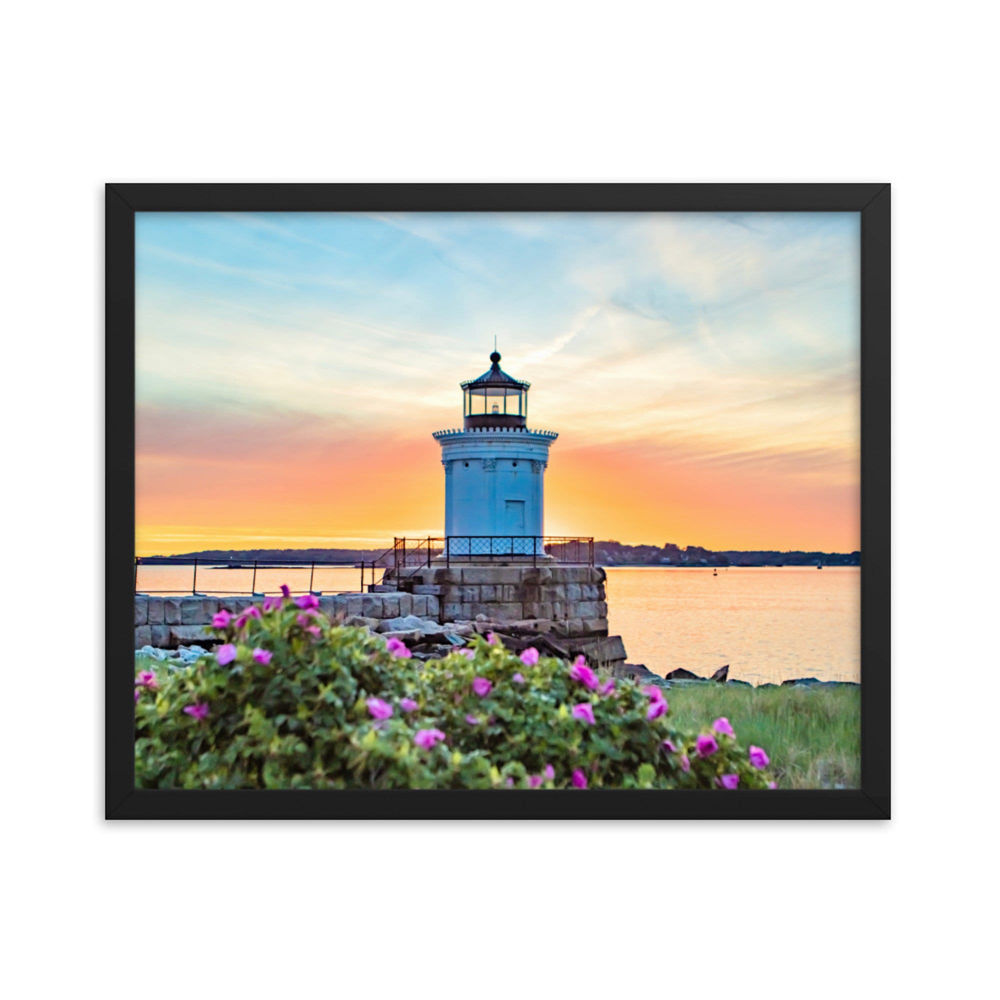 Embrace the tranquility of the Maine coast and elevate your space with this Sunrise at Bug Light Photo Print. Let the allure of the sunrise and the charm of sea roses fill your surroundings with a sense of wonder and peacefulness. Revitalize your decor and evoke cherished memories of coastal escapes with this exquisite piece of art. Order this print today and immerse yourself in the timeless beauty of South Portland Maine and Casco Bay.