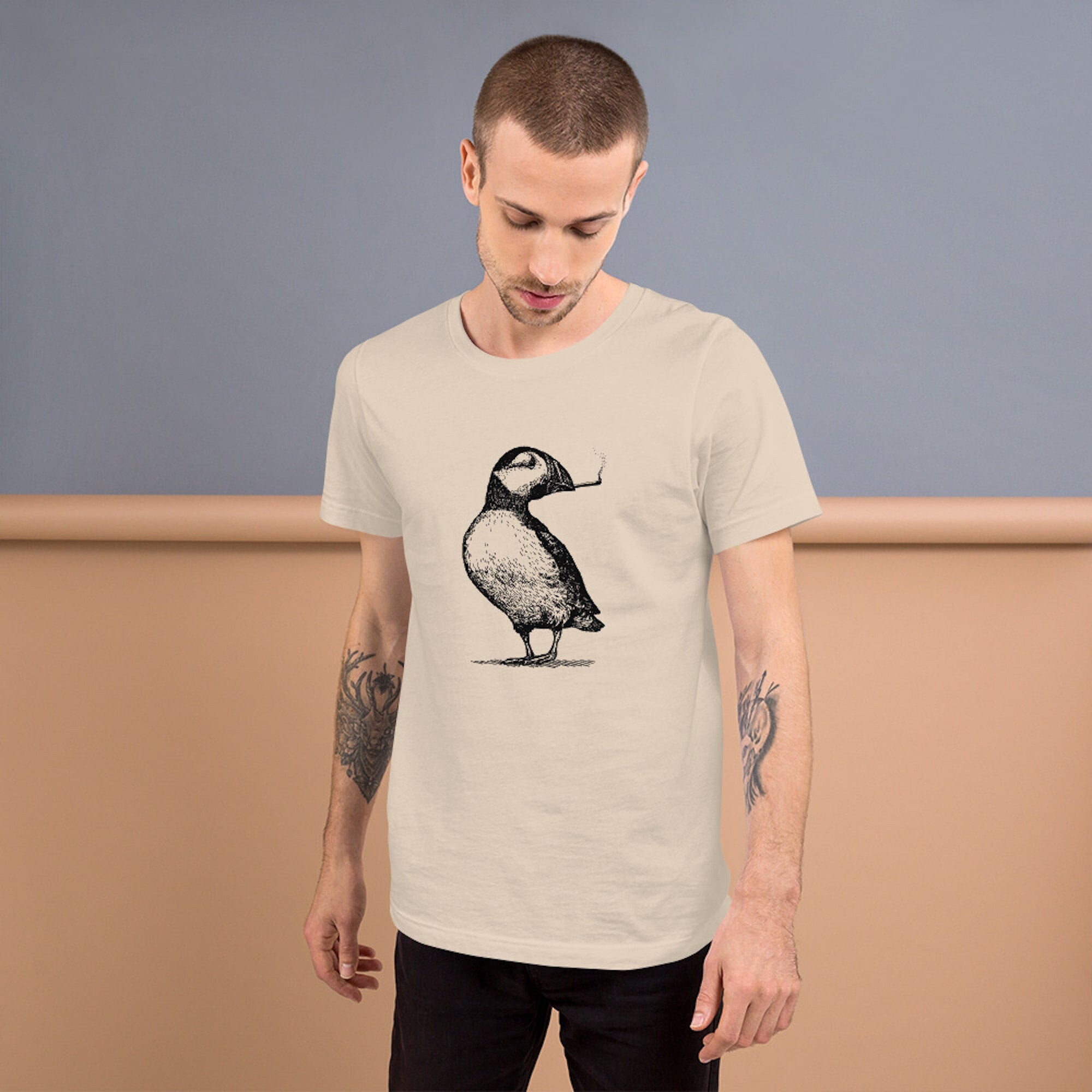 I bought this for my husband as a gag birthday gift (he loves puffins) and he wore it to work the next morning! He said it was very comfy, and I liked the quality of the print.