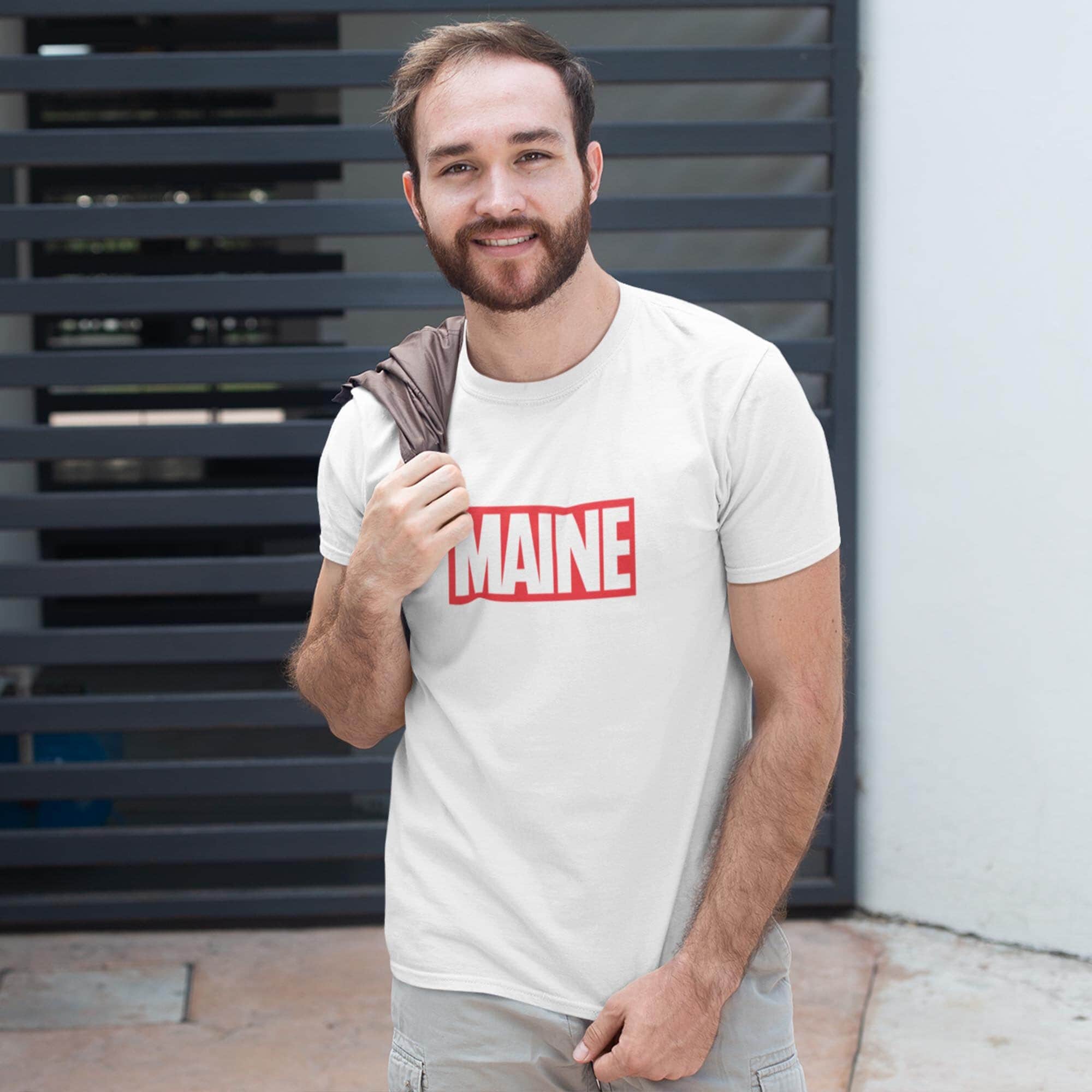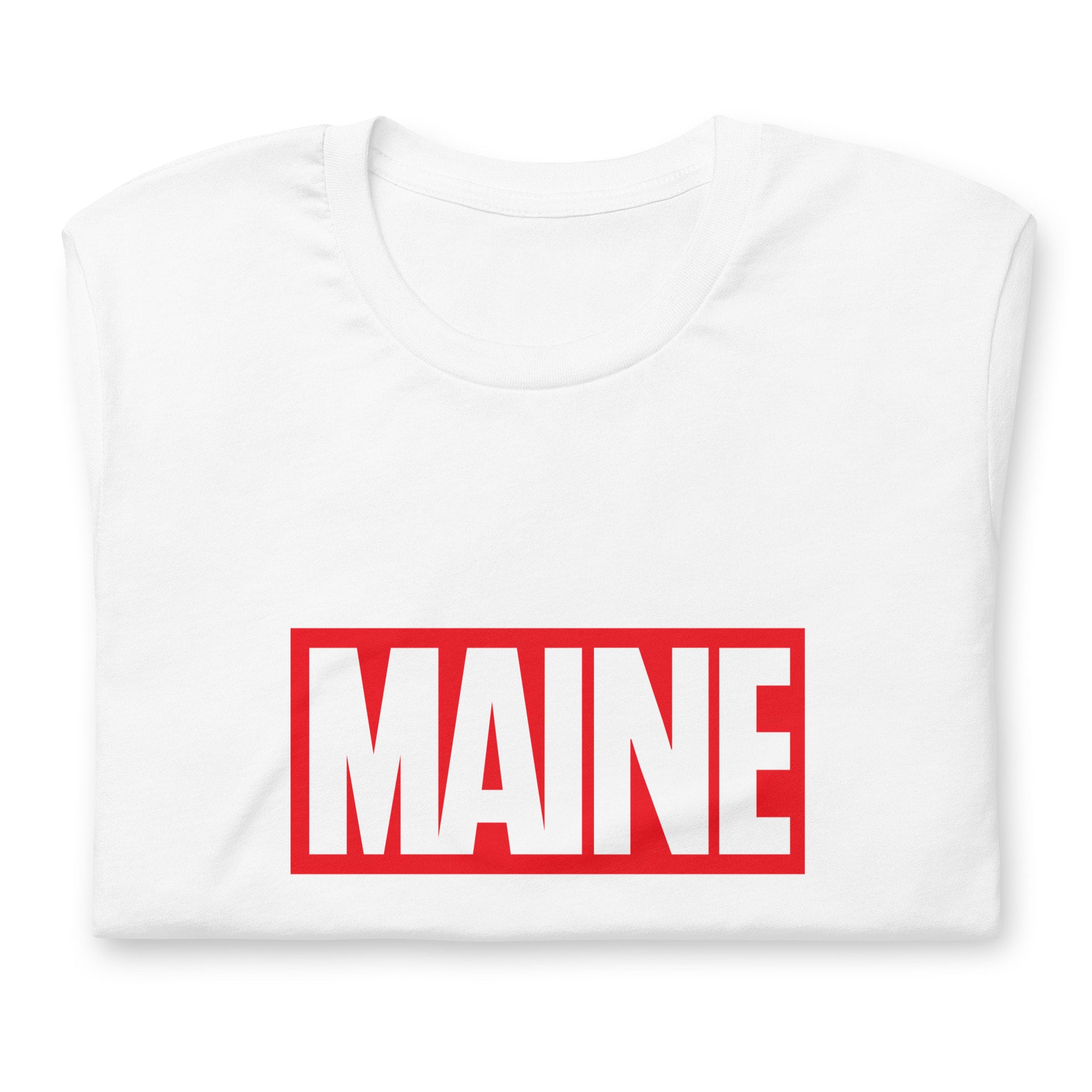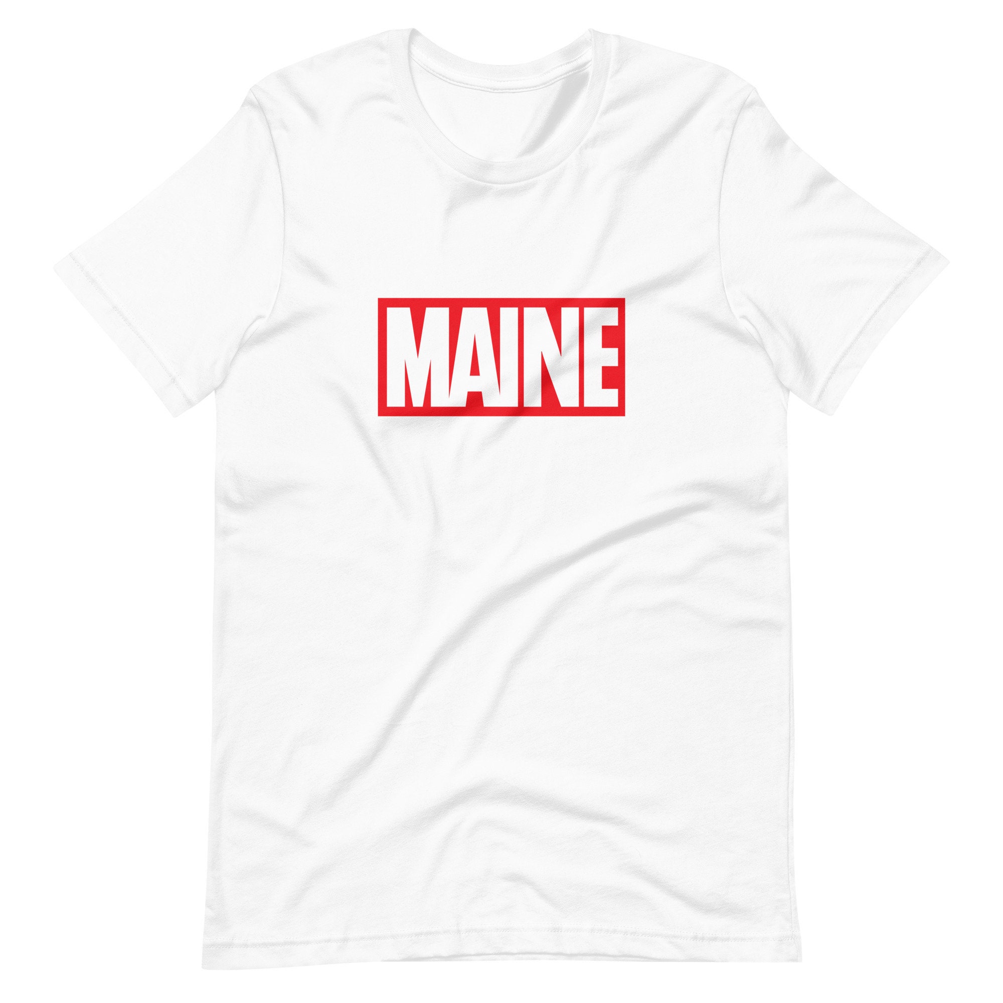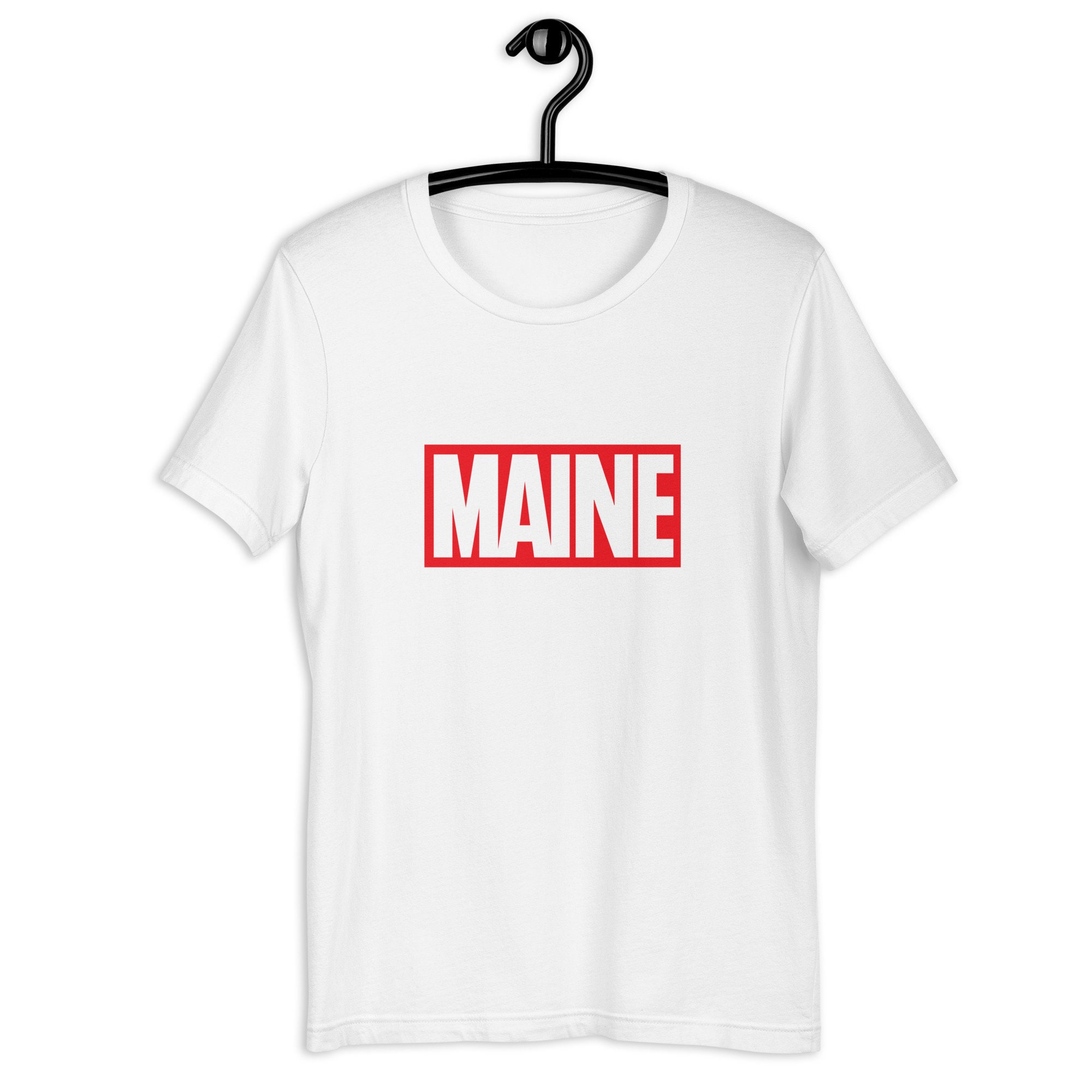 This Maine t-shirt is a bold fusion of the iconic Marvel Comics logo and the charm of the Pine Tree State! Channel your inner comic enthusiast while proudly showcasing your love for Maine with this Maine Marvel Shirt.