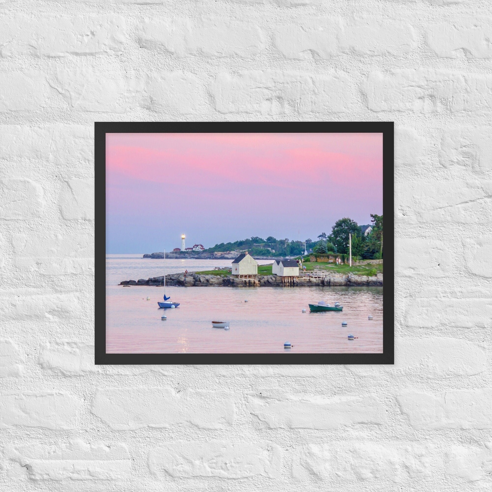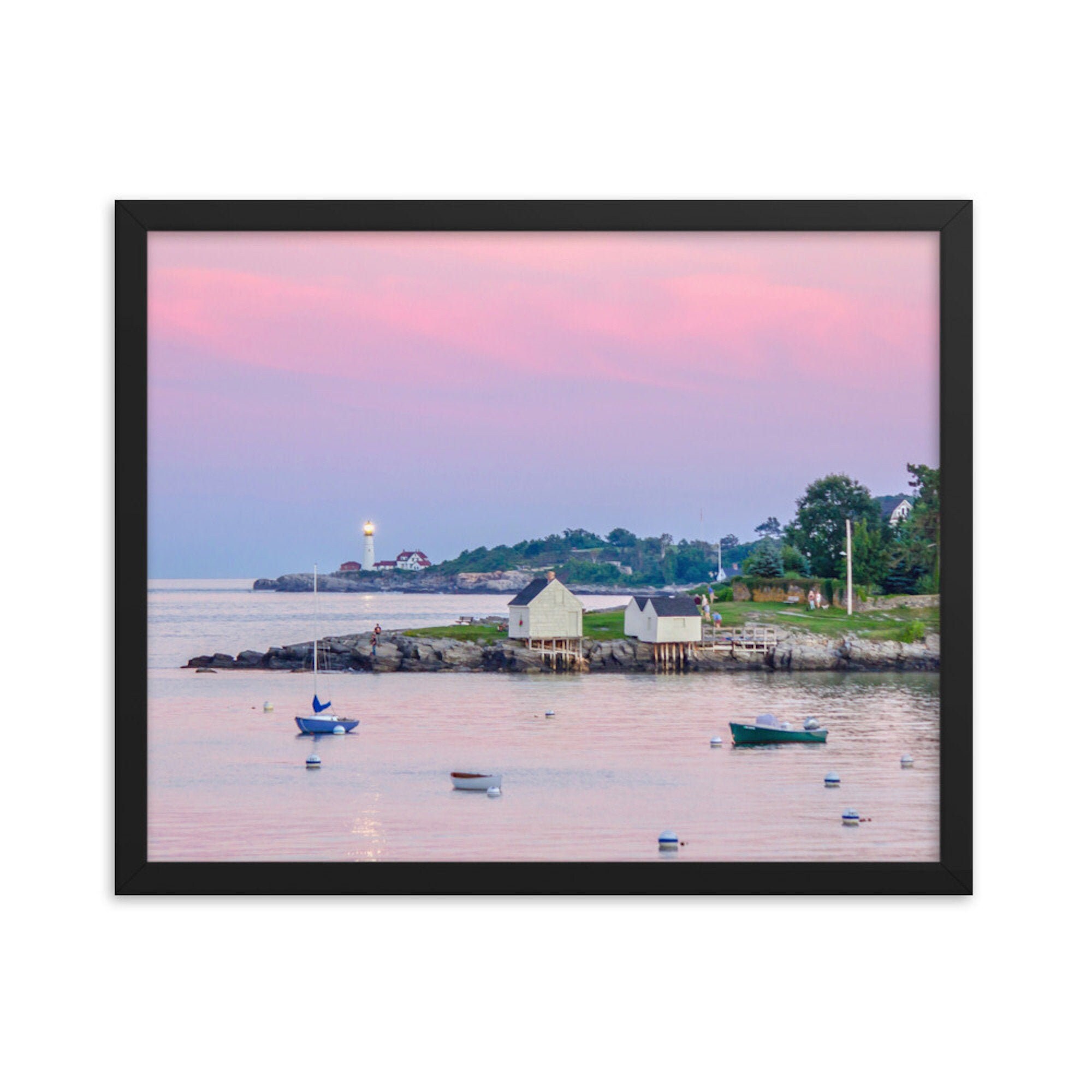 A breathtaking photo print capturing the serene beauty of Willard Beach in South Portland, Maine at sunset as the iconic Portland Head Light cast light across the calm waters. This captivating scene is a true testament to the natural wonders that Maine has to offer, and now, you can bring this picturesque moment into your own space.