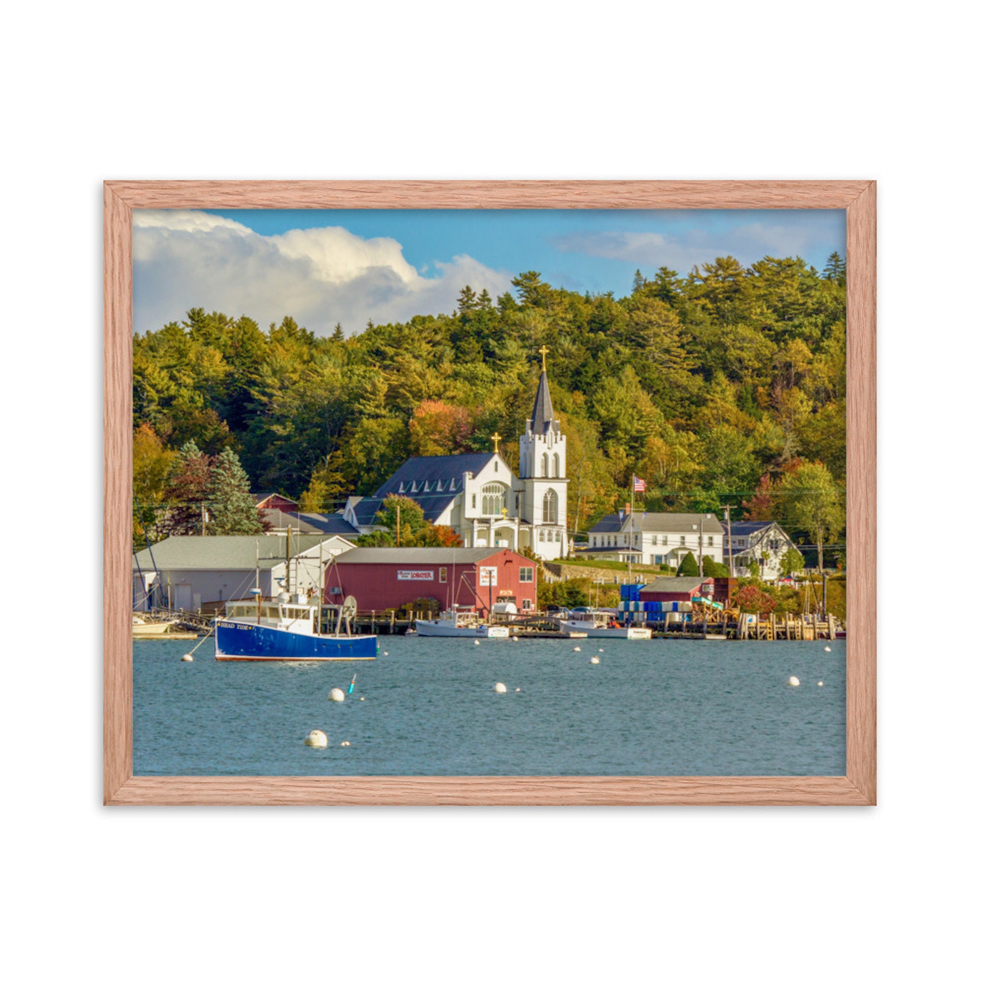 Experience the timeless beauty and tranquil charm of Boothbay Harbor, Maine from the comfort of your own home with our stunning Boothbay Harbor photo print. This exquisite piece of art captures the essence of this picturesque coastal town, immersing you in the soothing ambiance of the sea, boats gently swaying in the breeze, and the warm glow of the early autumn sun.