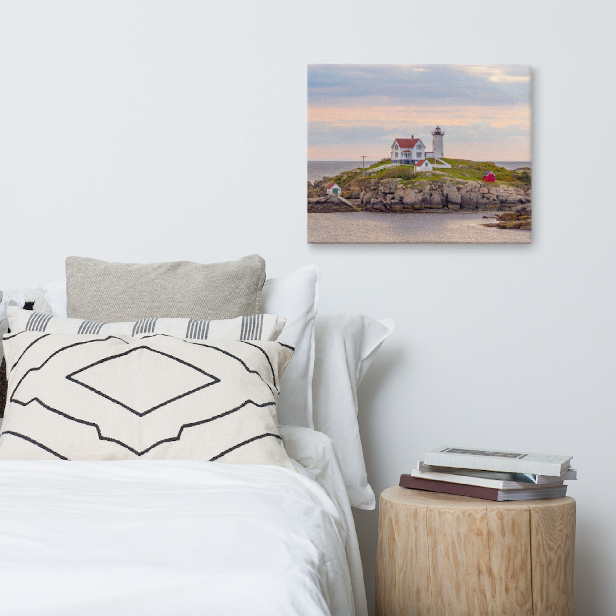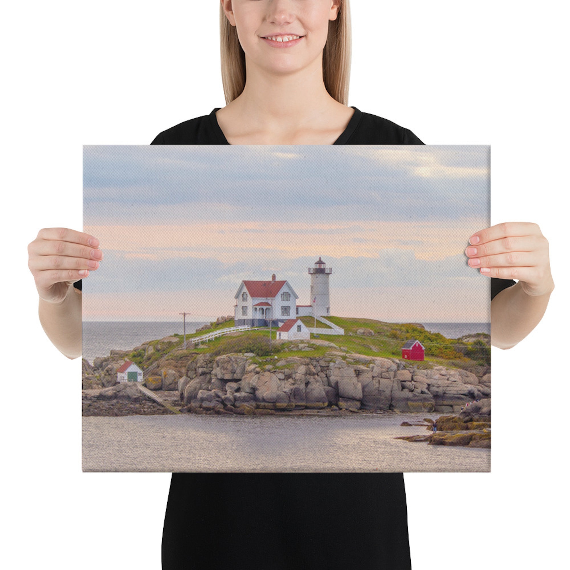 Capture the awe-inspiring beauty of Nubble Light at its finest moment – just after sunrise – with this exquisite photo print. Transport yourself to the idyllic shores of York Beach, Maine, as the first rays of the morning sun paint the sky in a gentle palette of pastel hues, casting a warm, golden glow over the iconic lighthouse.