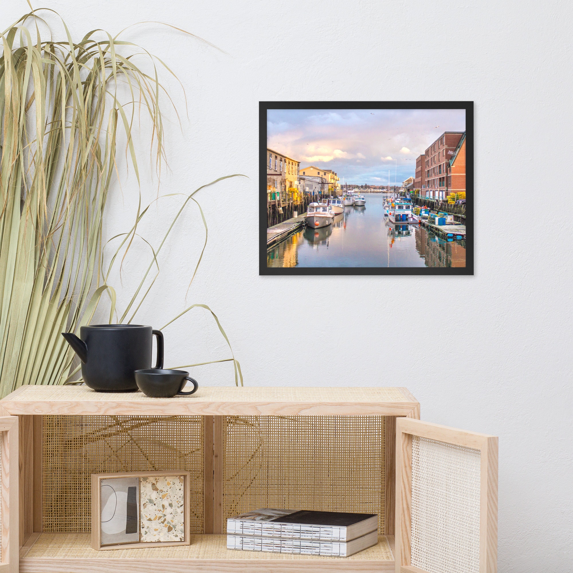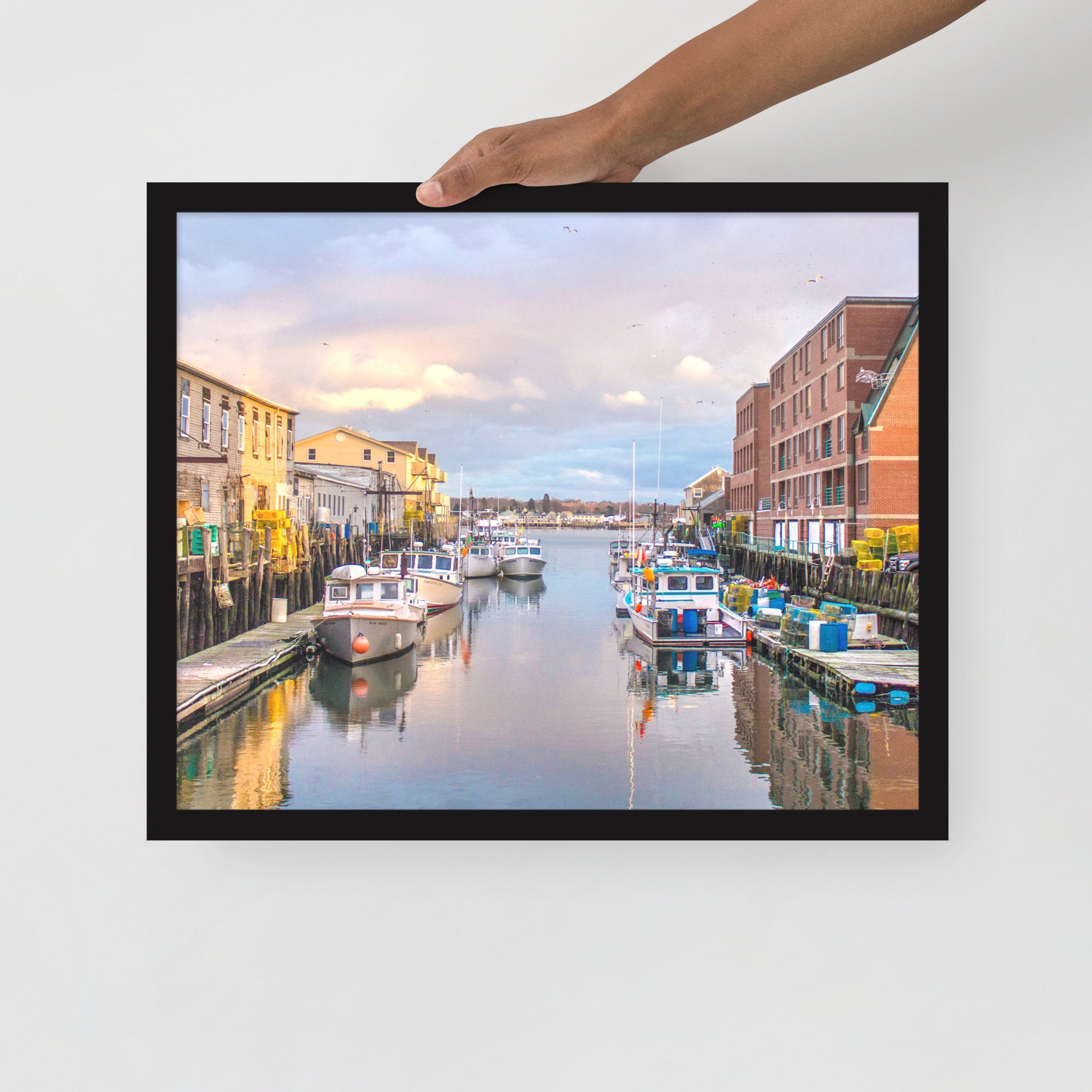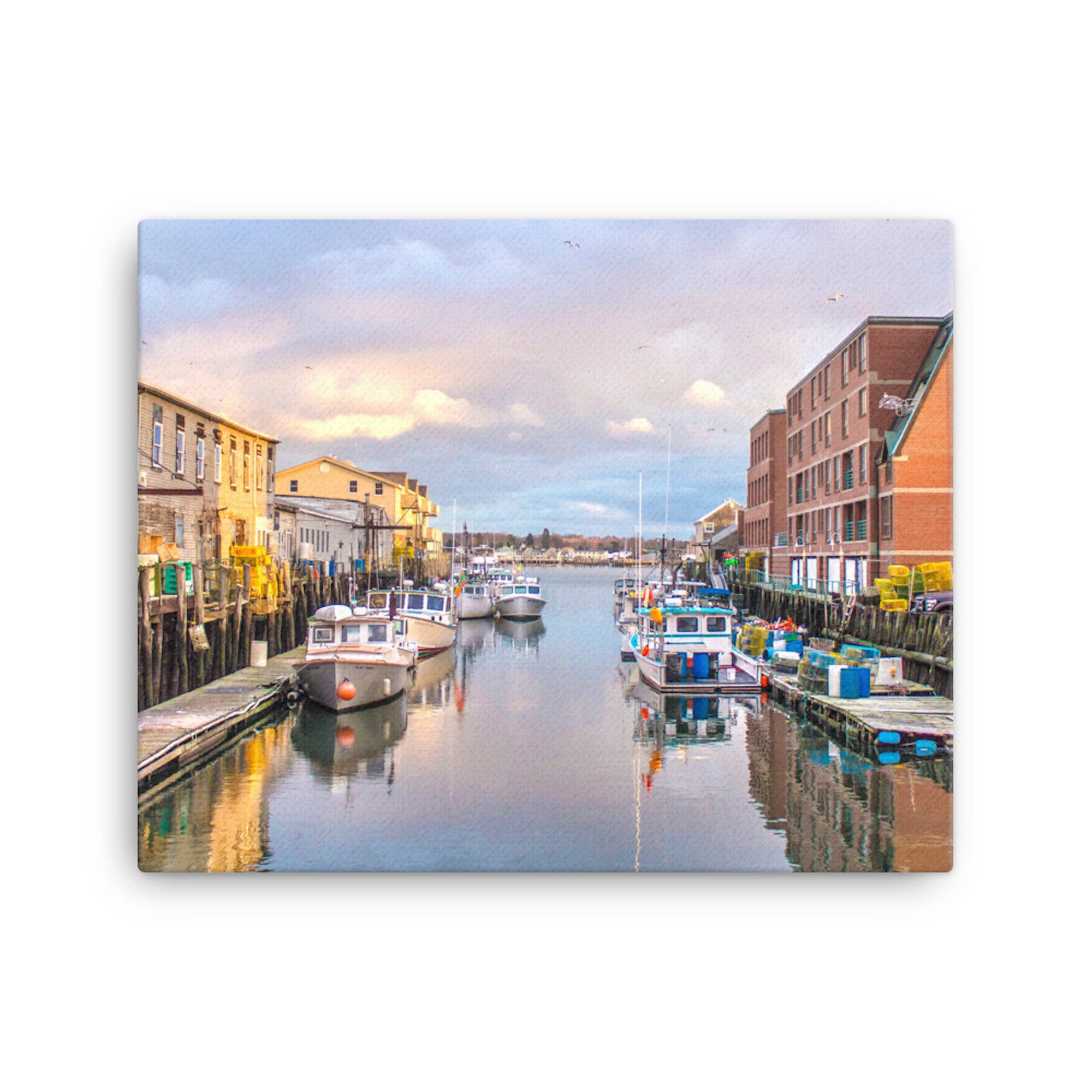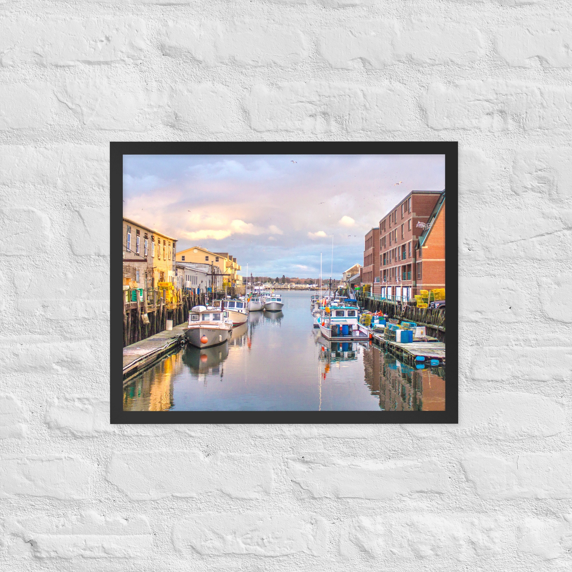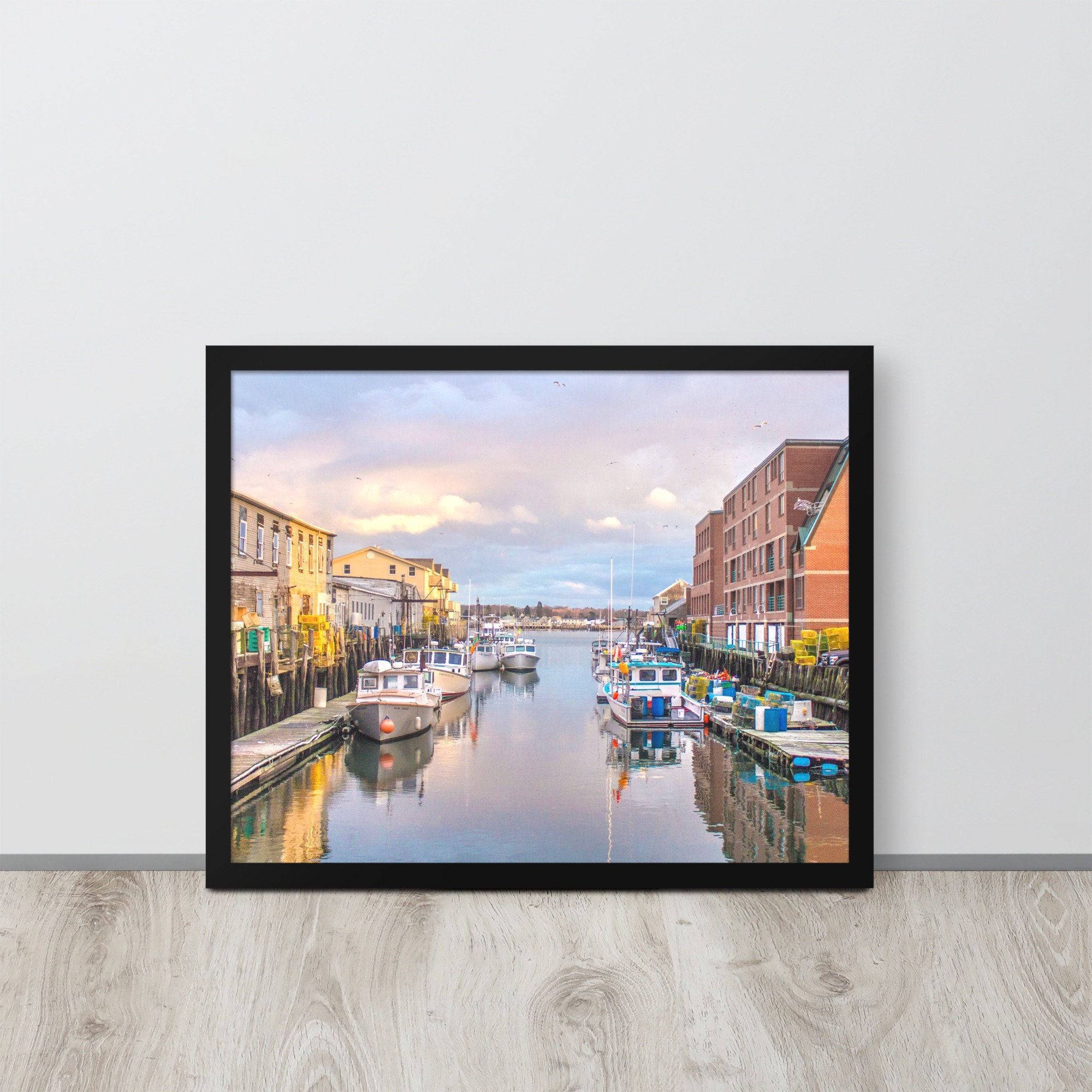 Experience the breathtaking beauty of Portland Pier at sunset with this stunning photo print capturing the charm of lobster boats gently swaying at the docks. This exquisite piece of art brings the essence of Portland’s working waterfront right into your living space, filling it with a sense of tranquility and nostalgia.